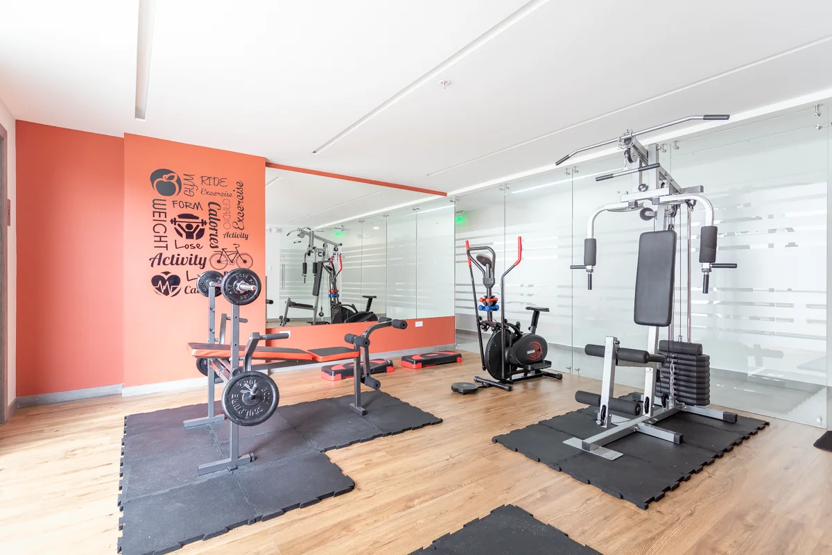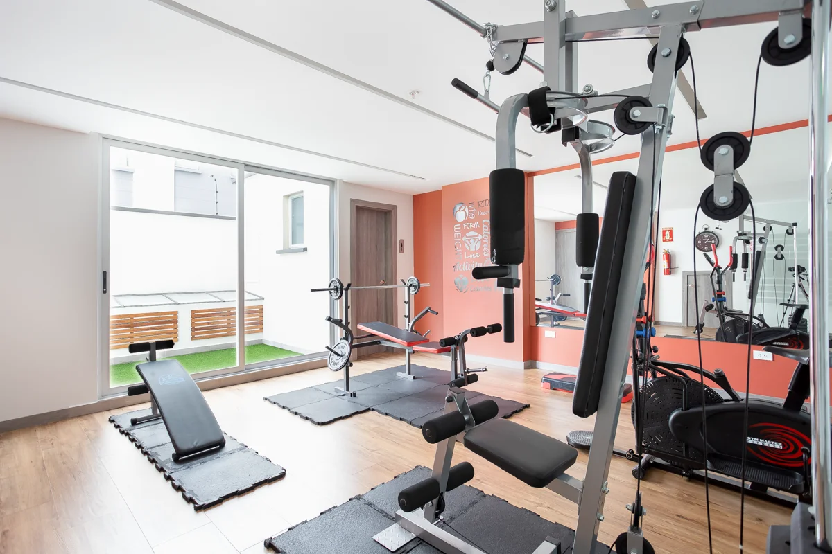 Para mantenerte en forma, equipado con máquinas de cardio, bancos de pesas, multifuerza y steps.